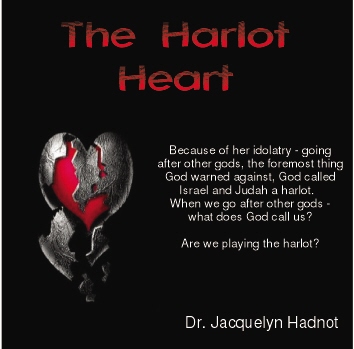 The Harlot Heart "Besides all your abominations and harlotries you did not remember the days of your youth, when you were naked and bare and squirming in your blood. Ezekiel 16:22 "How languishing is your heart," declares the Lord GOD, "while you do all these things, the actions of a bold-faced harlot. Ezekiel 16:30 Join Dr. Jacquie Hadnot on a journey into The Harlot Heart. Discover what creates a harlot heart. How the hartlot heart will stop the flow of God's blessings in your life. How to recognize a harlot heart. It's time we begin to look at the strategies of our enemy and decide whose heart we are seeking. Is it the heart of God you are pursuing or is it your tainted hartlot's heart?